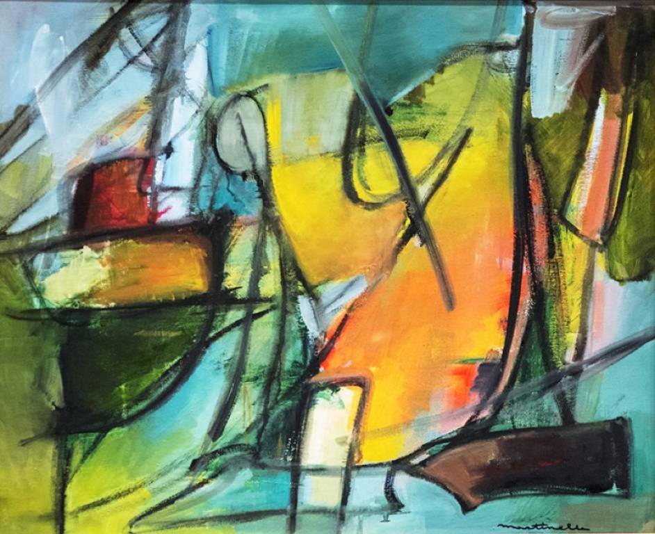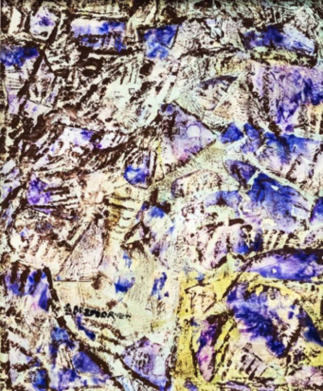 La ricerca espressionista si volge all’astrazione con l’elegante taglio materico di grande bellezza cromatica di Elvio Zorzenon, dall’efficace incisività nel rapporto segno-colore.