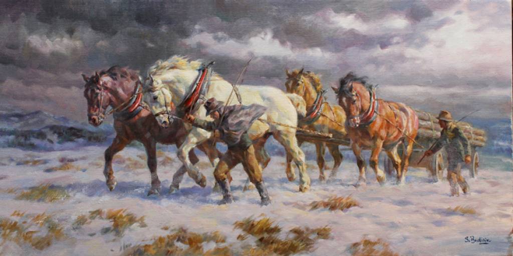Il fascino della pittura di Budicin consiste in un fatto semplice ed essenziale: la capacità di essere un artista a tutto tondo che, come i grandi del passato, sa affrontare con competenza, passione e levità qualsiasi tema. Dal ritratto, espresso in modo impeccabile nella struttura e nella resa cromatica e poetica, al paesaggio con animali e soggetti umani, che spesso fanno sognare, perché, come nell’olio intitolato “Trasporto dei tronchi”, suggeriscono il filo d’un racconto, lievemente romantico e d’avventura, dove senti frusciare il vento e scontrarsi gli elementi. Per non parlare delle scene mitologiche e di battaglia che, sulla base di un attento studio storico e di costume, ti raccontano l’evento in modo quasi fiabesco, coinvolgendoti emotivamente fino in fondo, tra verità e sogno: “visioni” - conclude Accerboni - che non hanno perso di smalto, anzi si sono arricchite in cinquant’anni di appassionata e valente pittura, di cui alcuni vissuti a illustrare con grande perizia importanti volumi per case editrici di livello nazionale.