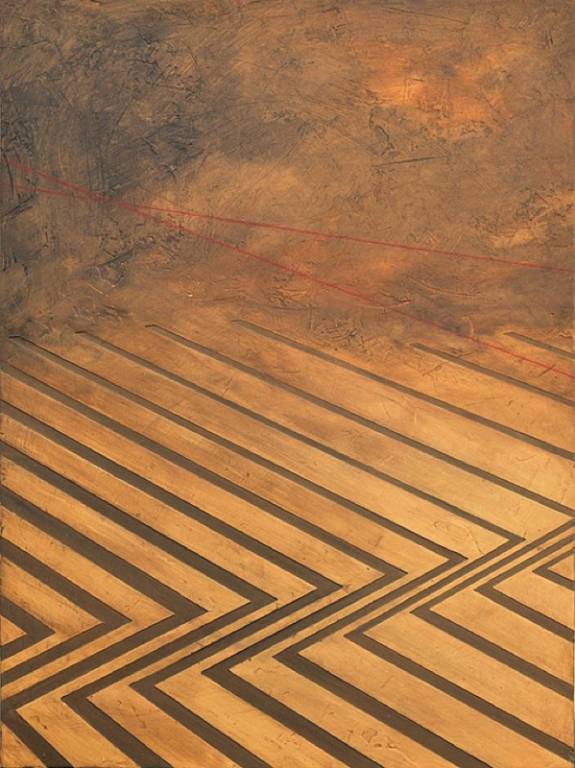 La ricerca espressionista si volge all’astrazione con l’elegante taglio materico di grande bellezza cromatica di Elvio Zorzenon, dall’efficace incisività nel rapporto segno-colore.