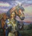 Giovanna d'Arco, 2014 - olio su tela - cm 80x80Ma, oltre al talento e al grande impegno di documentazione storica che precede l’esecuzione di ognuno di tali dipinti, Budicin - che in questa ricca rassegna ci presenta una tematica per lui del tutto nuova, frutto di un lavoro quinquennale - dimostra di possedere l’ineffabile dono di saper rappresentare, al di là delle pure immagini, il concetto di epica, di coraggio e di tenzone, riuscendo a coinvolgere fortemente il fruitore sotto il profilo emotivo grazie anche al grande dinamismo che pervade le sue rappresentazioni, come per esempio accade nella scena dei cavalieri arabi o in quella in cui gli indiani d’America cacciano il bisonte.